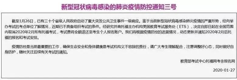 近期新型冠状病毒肺炎疫情爆发,TOEFL、IELTS和PTE考试暂停举办。