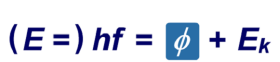 这里E代表光子到达金属表面的能量,可以表示为hf,其中h是普朗克常量(Planck constant),f表示光照的频率(frequency), Φ表示逸出功(电子的)或者功函数,即电子离开金属表面所需要的最小能量,Ek表示离开了金属表面的光电子所获得的能量