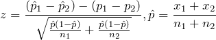 总体比例差的假设检验。检验统计量为: